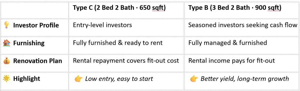 *Based on estimated rental income and current market assumptions. Actual returns may vary depending on unit type, furnishing package, and management plan.